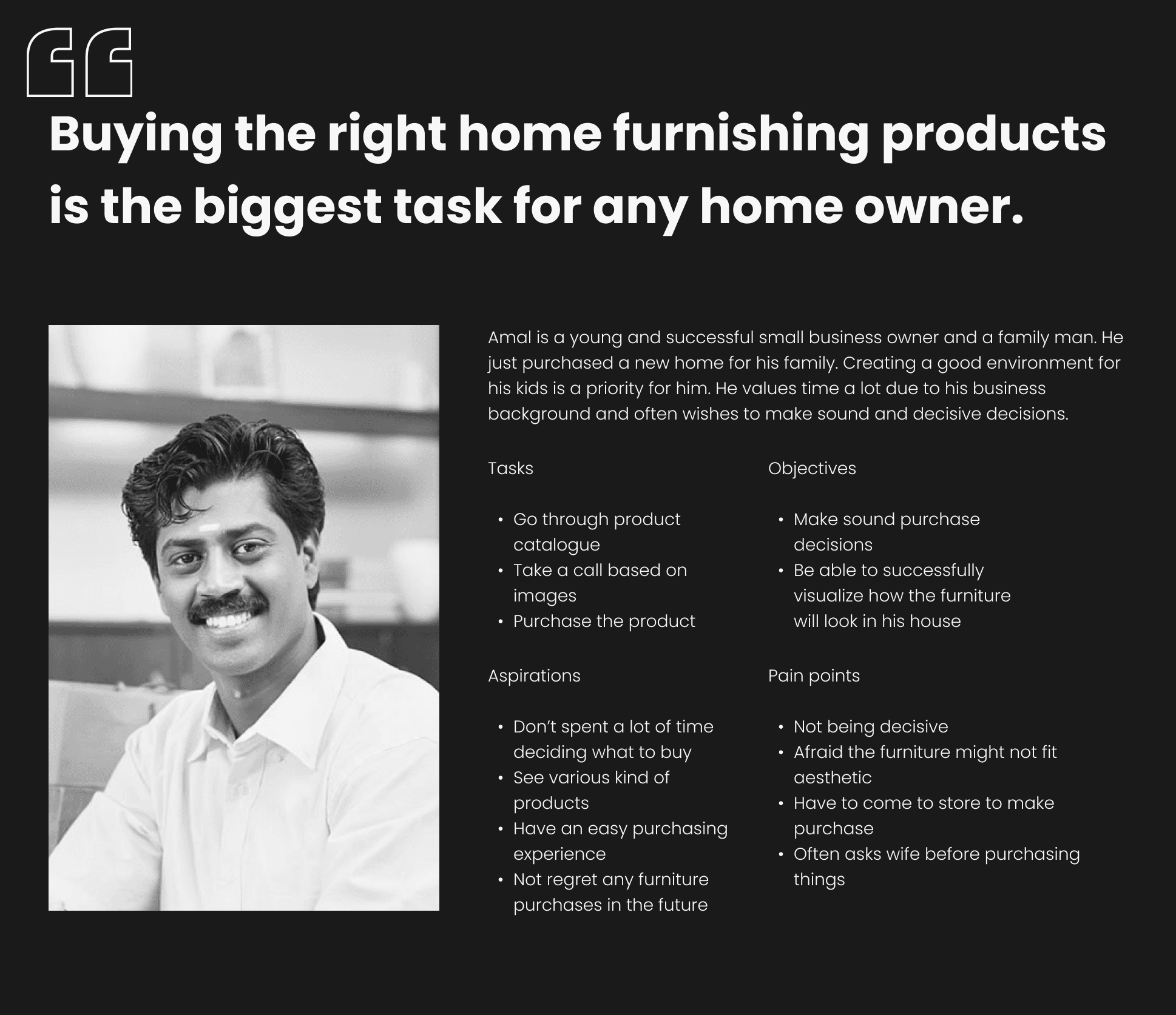 Some of the customer’s core frustrations are seen during the in-store experience. The customers are often confused about the fact whether this piece of furniture will go with the rest of the furniture or not. The sales personnel are unable to show or help the customers visualize the same.