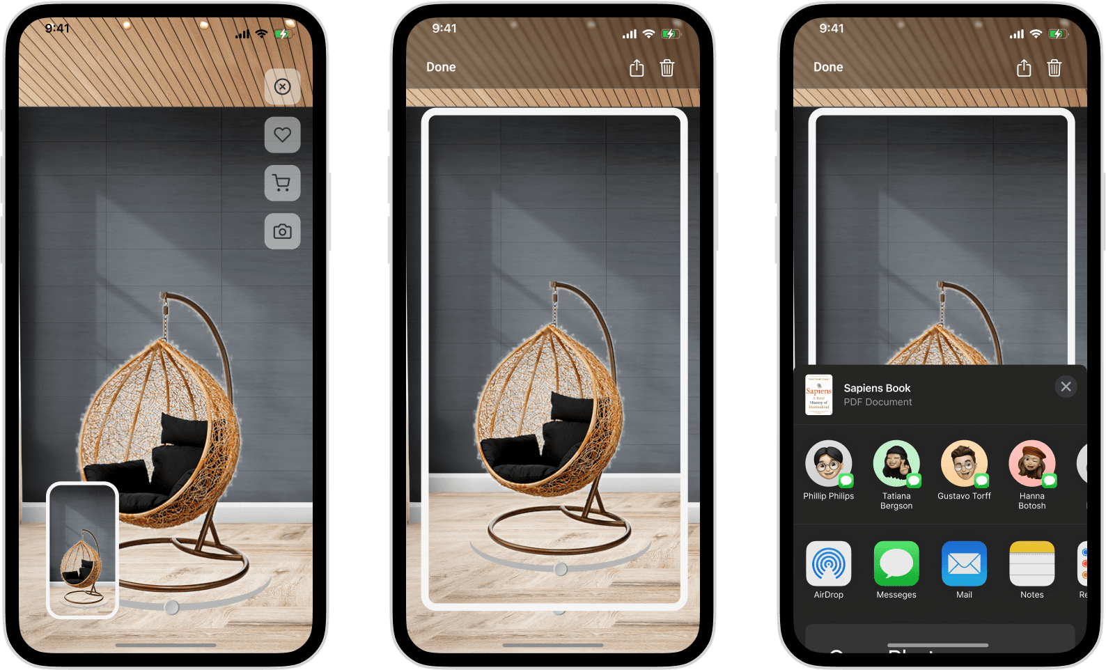 Introducing the AR view feature allows users to share their product experiences with friends and family, seeking valuable feedback and opinions. This innovative approach empowers users to make more confident purchasing decisions by immersing their close circle in the product's virtual realm, fostering informed choices.